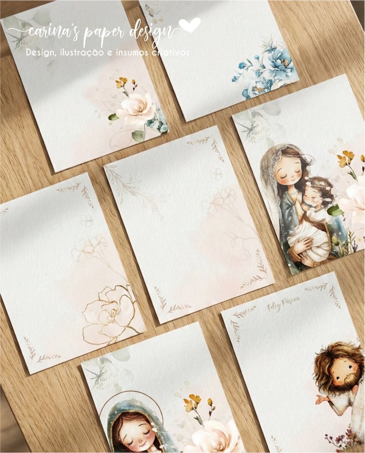 Temas: Florais, Maria com Jesus, Jesus ressuscitado e Nossa Senhora Aparecida.