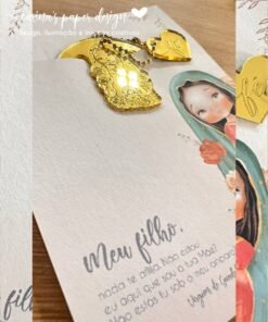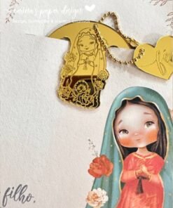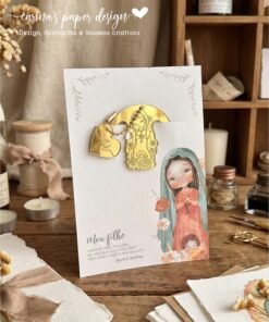Bônus Exclusivo: Embalagem Pronta Para fechar com chave de ouro, você recebe gratuitamente o arquivo digital do Card Ilustrado Exclusivo de Guadalupe. Basta imprimir na sua loja e usar como base para prender as peças douradas. O contraste do dourado com a arte do card cria um produto final irresistível para presente.