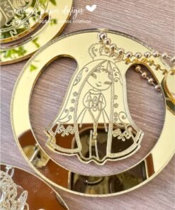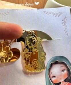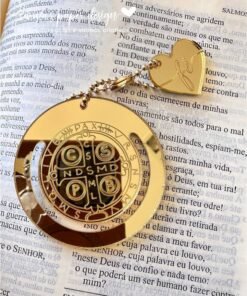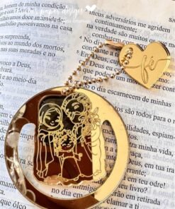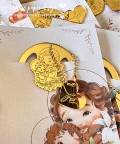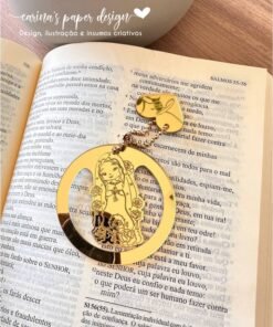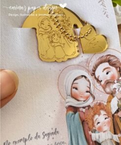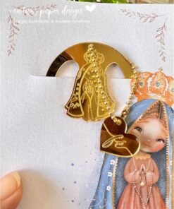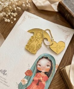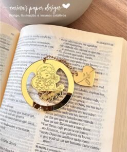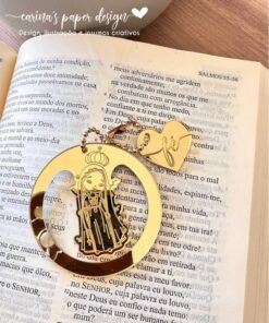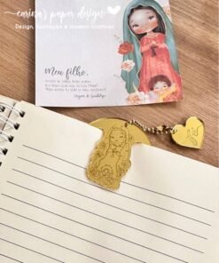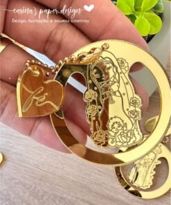 • O Conjunto Perfeito: Cada unidade principal (Santinho, 5cm) acompanha uma delicada tag adicional em formato de coração com a palavra “Fé” gravada, no mesmo material dourado. É mais que um marcador, é um amuleto.