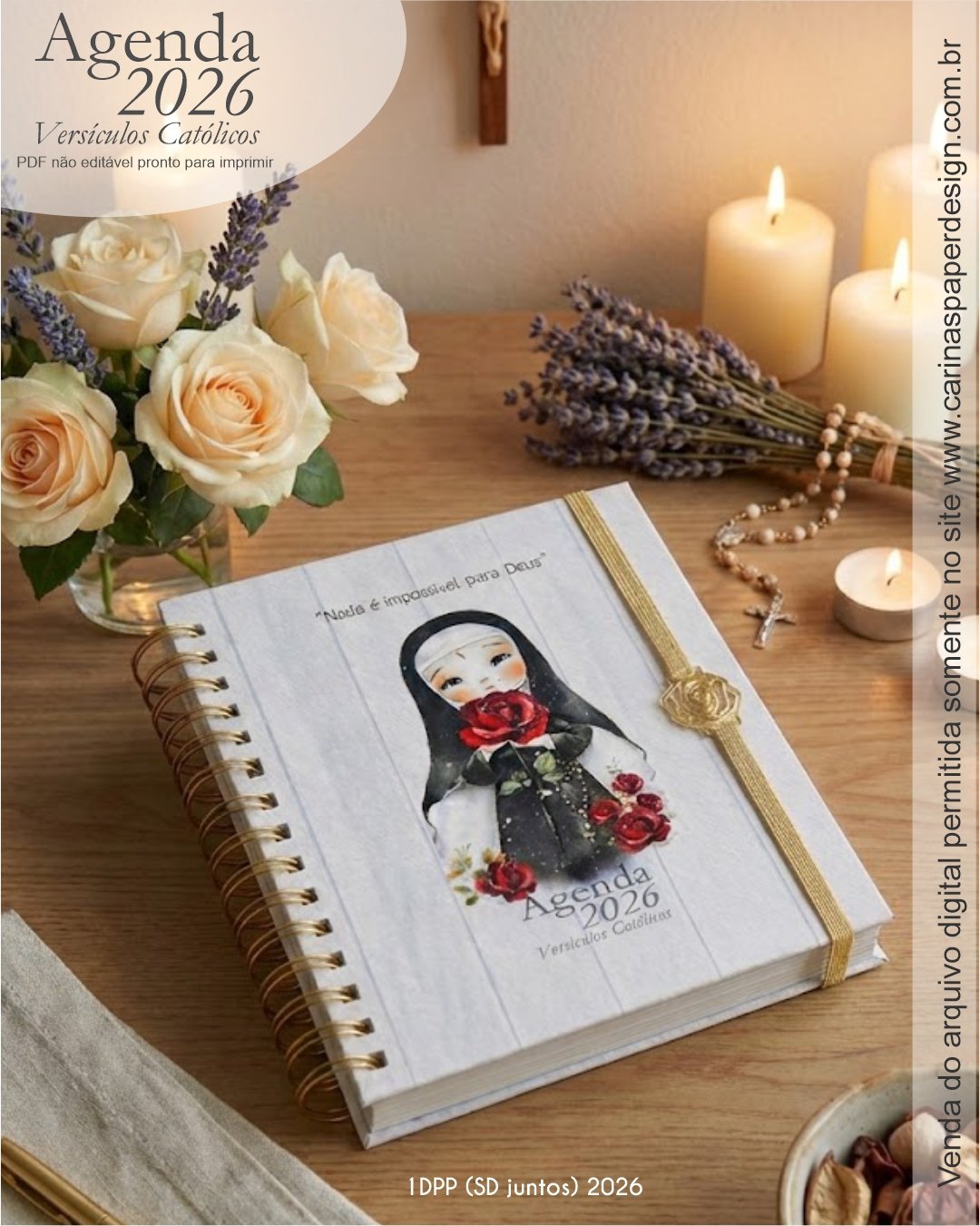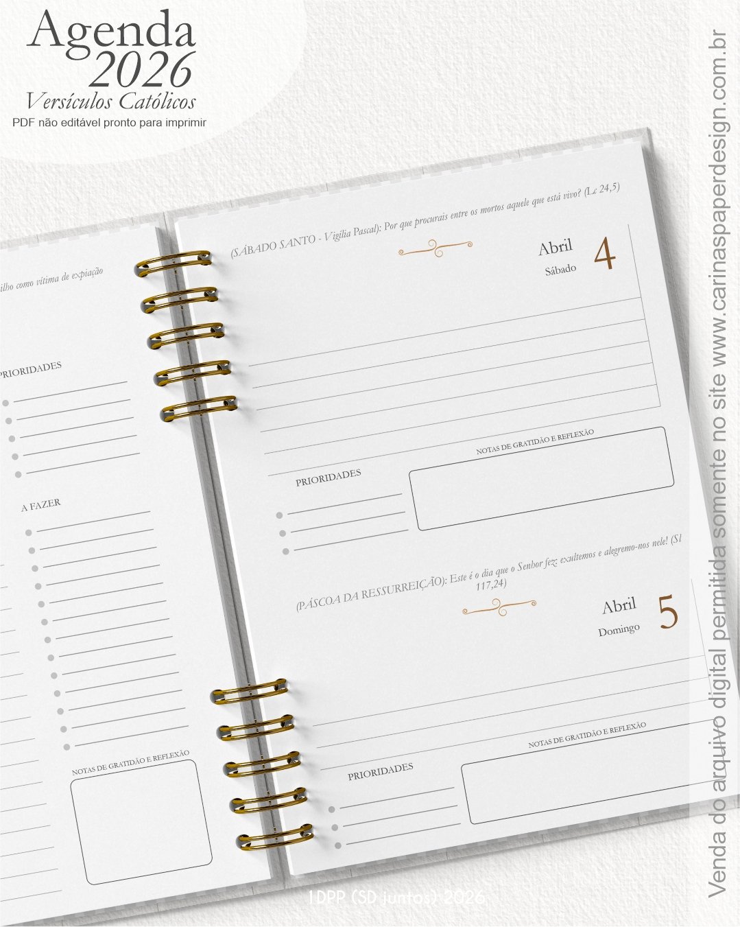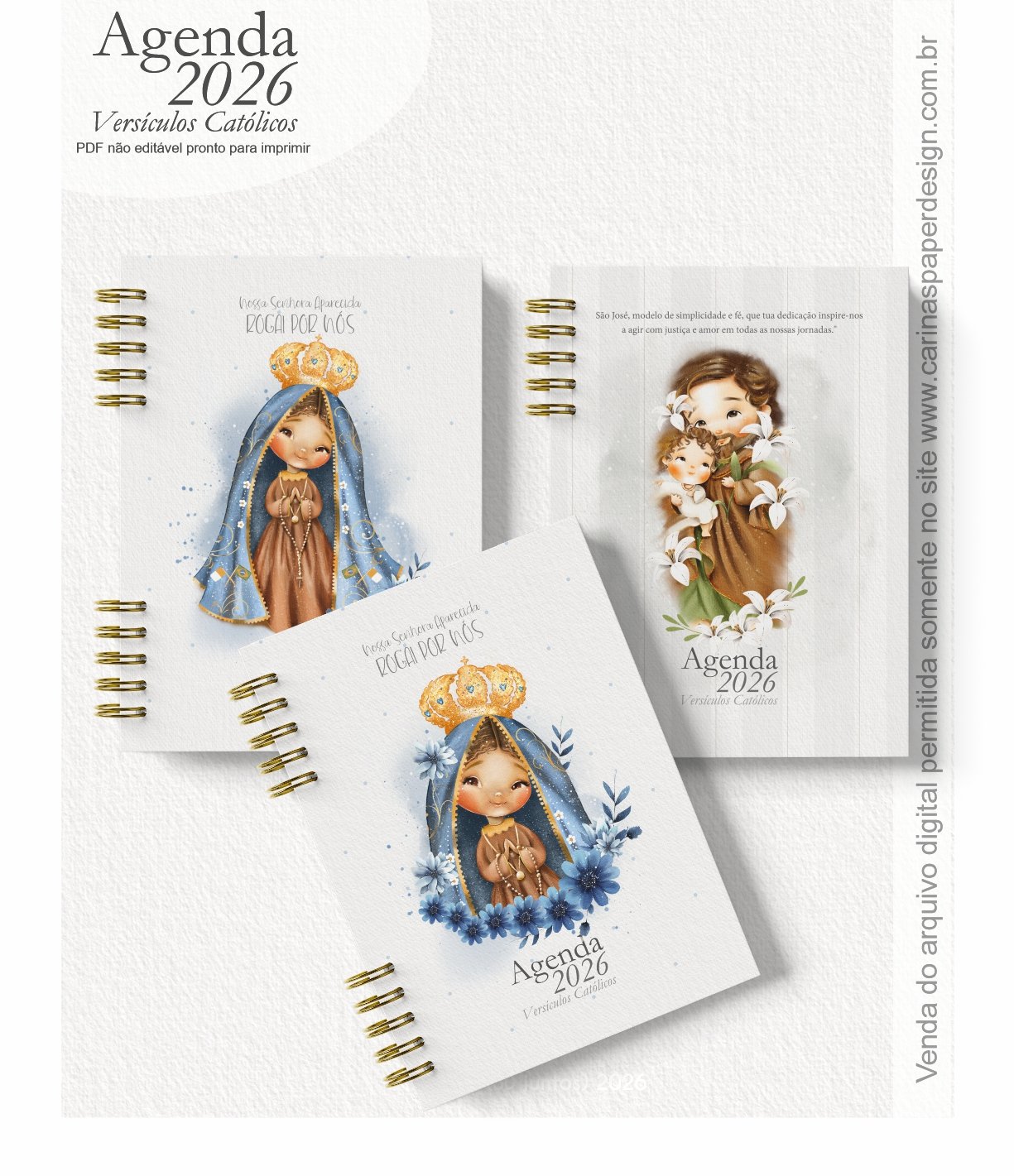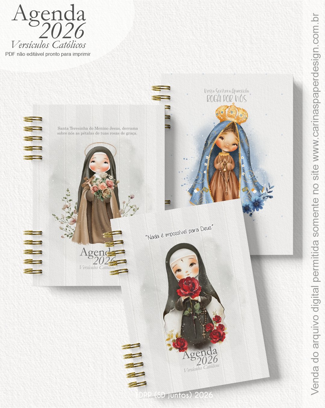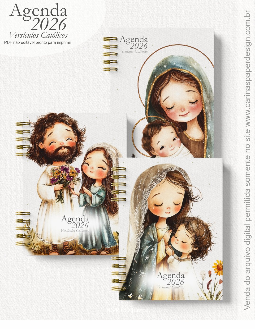 1 miolo de Agenda datada 2026 com versículos católicos PDF não editável com 336 páginas (168 folhas)