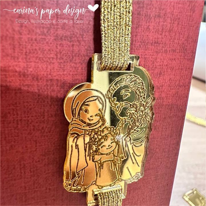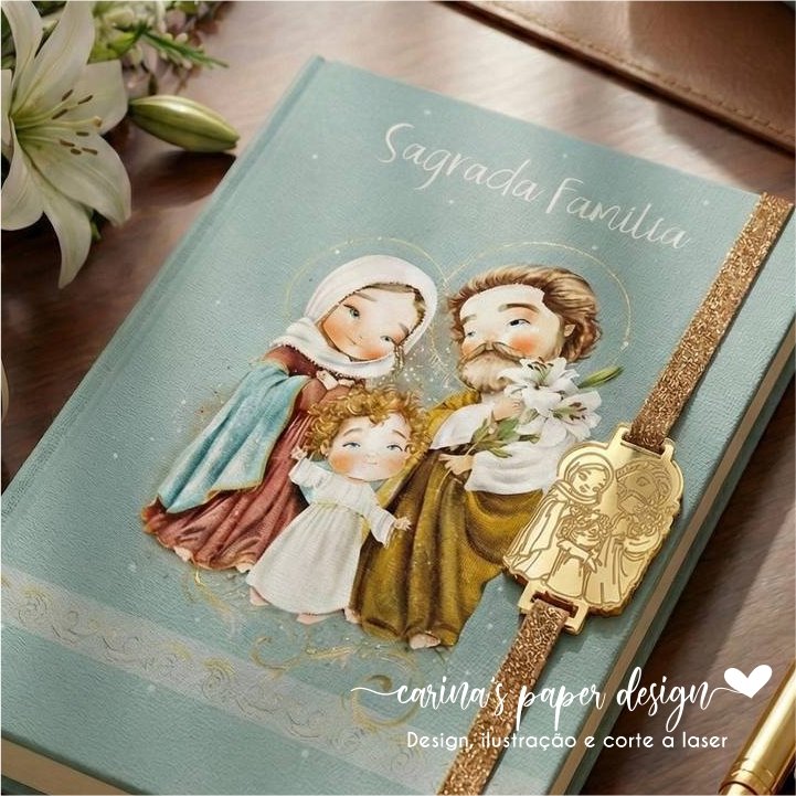 Sabemos que no mercado de papelaria personalizada, o detalhe é o que define o preço e a preferência do cliente. Este passante de acrílico espelhado da Sagrada Família não é apenas um acabamento; é um toque de fé e sofisticação que valoriza imediatamente o seu trabalho. Ideal para quem produz Agendas de Oração, Diários Espirituais ou Planners Religiosos, essa peça foi desenhada para se destacar na capa, transmitindo delicadeza e luxo. O brilho do acrílico dourado cria um contraste perfeito tanto em capas coloridas quanto nas mais neutras, atraindo o olhar e o coração de quem recebe o produto.
